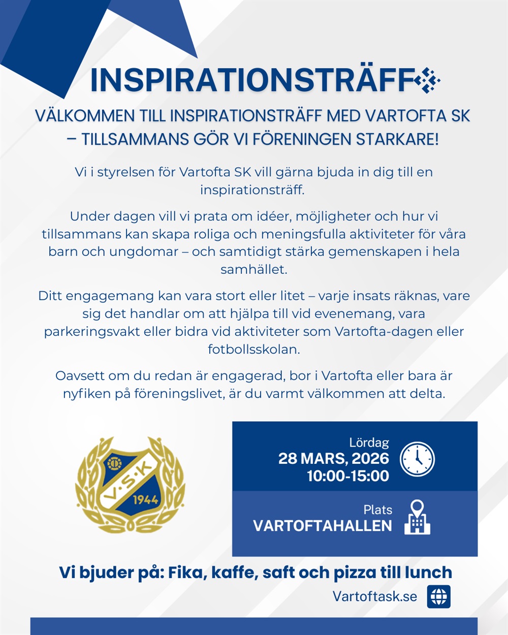 Vi i Vartofta SK bjuder in alla våra medlemmar till årets årsmöte!