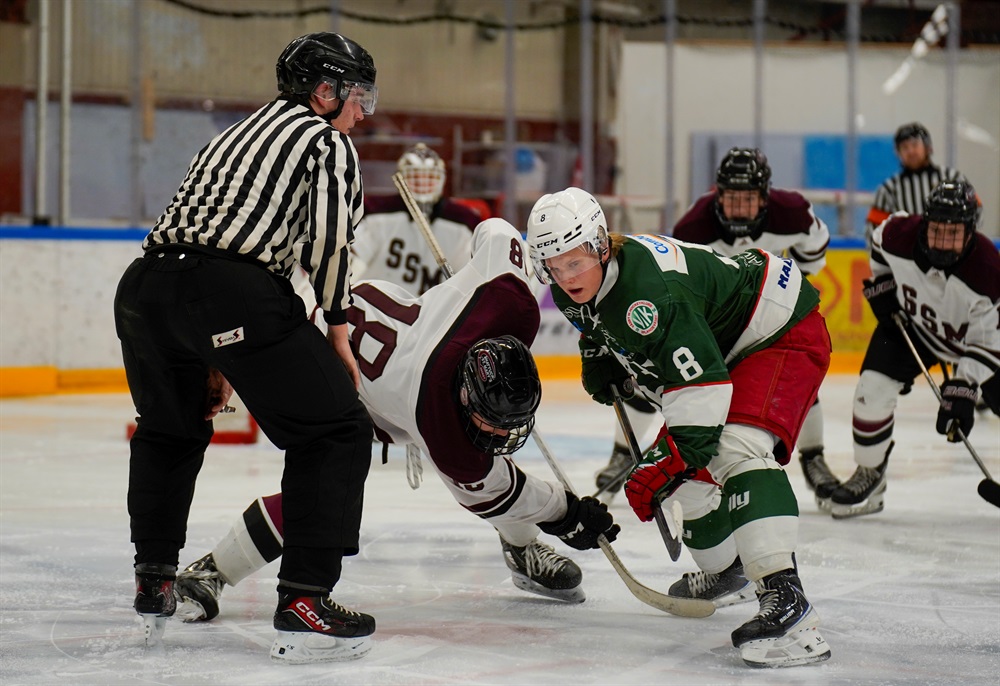 Den 26e november bjöds på en häftig träningsmatch mot Shattucks St. Mary’s U18 prep från Minnesota. Shattucks är känt som plantskola för framtidens NHL spelare som t.ex. Sidney Crosby och Macklin Celebrini. Att möta ett sådant duktig lag skulle kräva mycket av våra killar och dessutom drabbades gruppen av flera sjukdomsfall och skador inför matchen. Trots manfall blev det en riktig kul tillställning med mycket högt tempo, stor publik och en målvaktsklinik av Simon Omurcali i vår kasse!