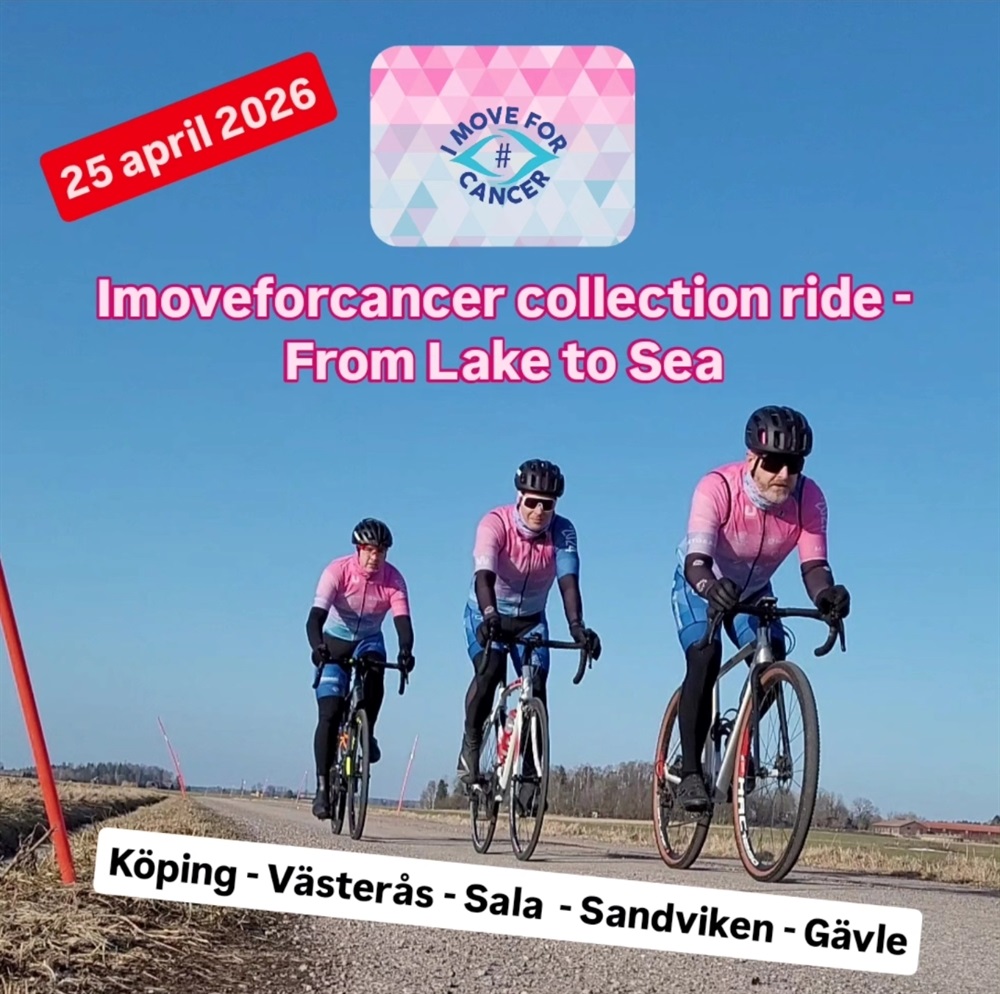 Som en del av I Move for Cancer anordnas insamlings-cykelturen Imoveforcancer collection ride - From Lake to Sea den 25 april 2026 mellan Köping och Gävle. Vi kommer göra ett stopp vid Lögarängsbadet i Västerås kl 9.30. Vi kommer även göra stopp i Sala och Sandviken.
