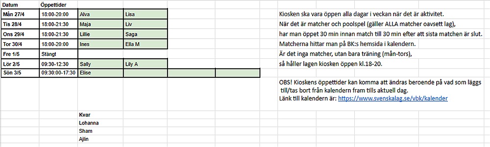 Hej! Är det någon som kan byta kioskpass med mig? Jag kan ta tisdag, onsdag eller torsdag, men kan tyvärr inte lördag eller söndag eftersom jag jobbar då. Jag vore väldigt tacksam om någon kan byta med mig. Tack!