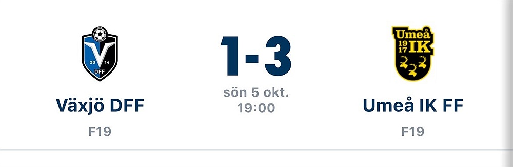 När domaren på söndagskvällen blåste till start i F19 matchen mellan Växjö DFF och de långväga gästerna från Umeå var inte hemmalaget alls på tårna, underläge 0-2 efter 11minuter var inte den start vi önskade oss.