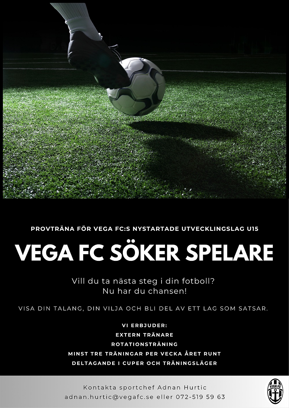 Vega FC bedriver huvudsakligen fotboll för barn och unga i området Vega utifrån våra ledord som är: