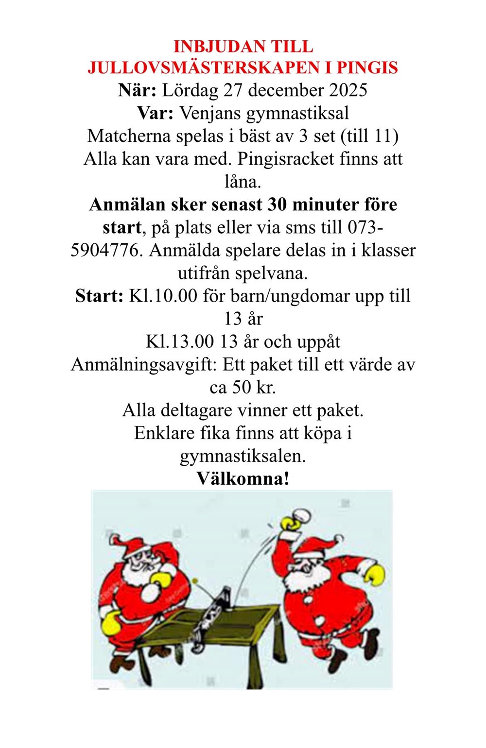 Bordtennisträning måndagar för barn & ungdomar/vuxna