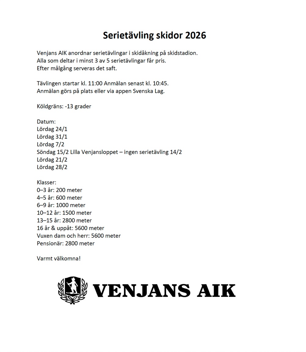 Venjans AIK inbjuder till Lilla Venjansloppet 2026