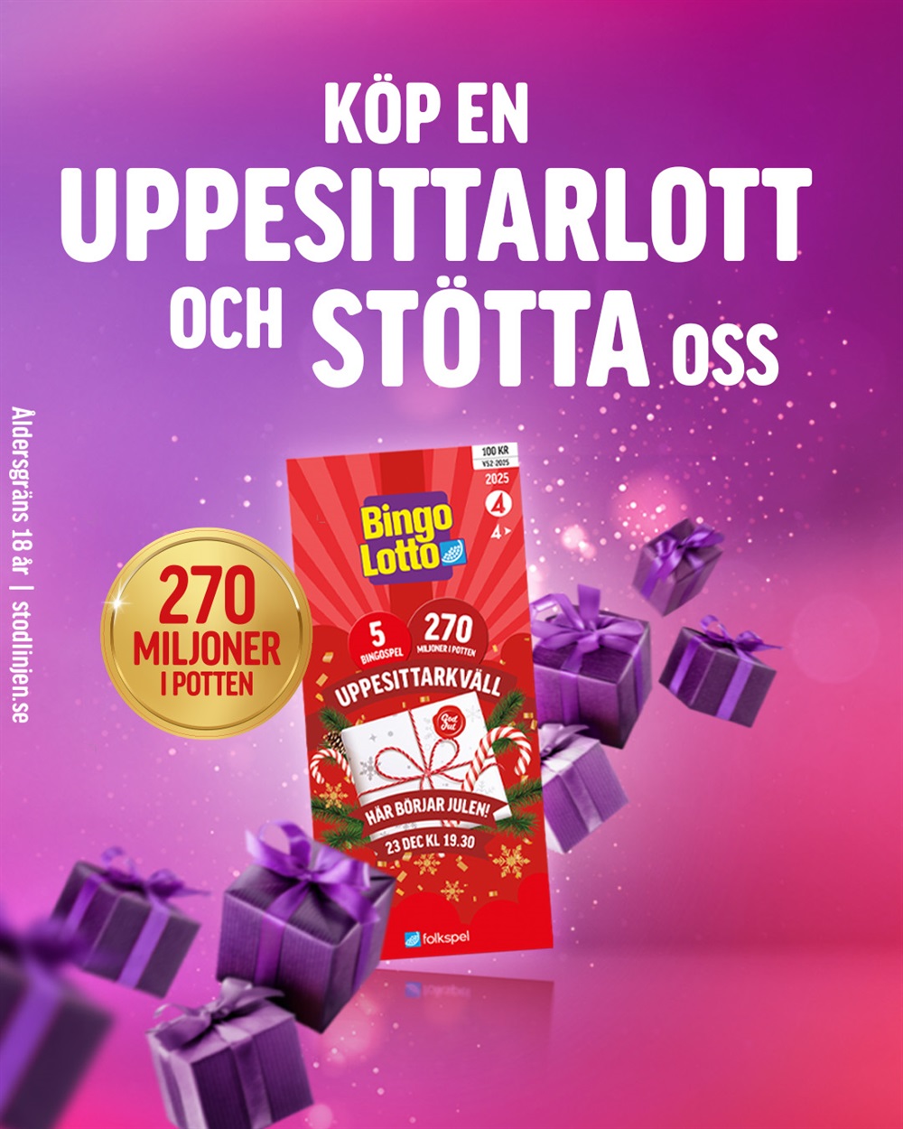 Har du inte köpt bingolott till uppesittarkvällen än? Om inte klicka på länken och stötta oss. God Jul!