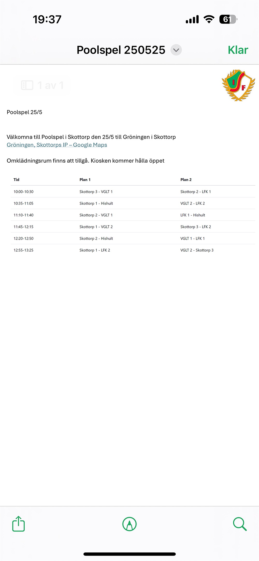 Återkom om ni har några frågor. Vi ses på träningen på torsdag som vanligt. ⚽️