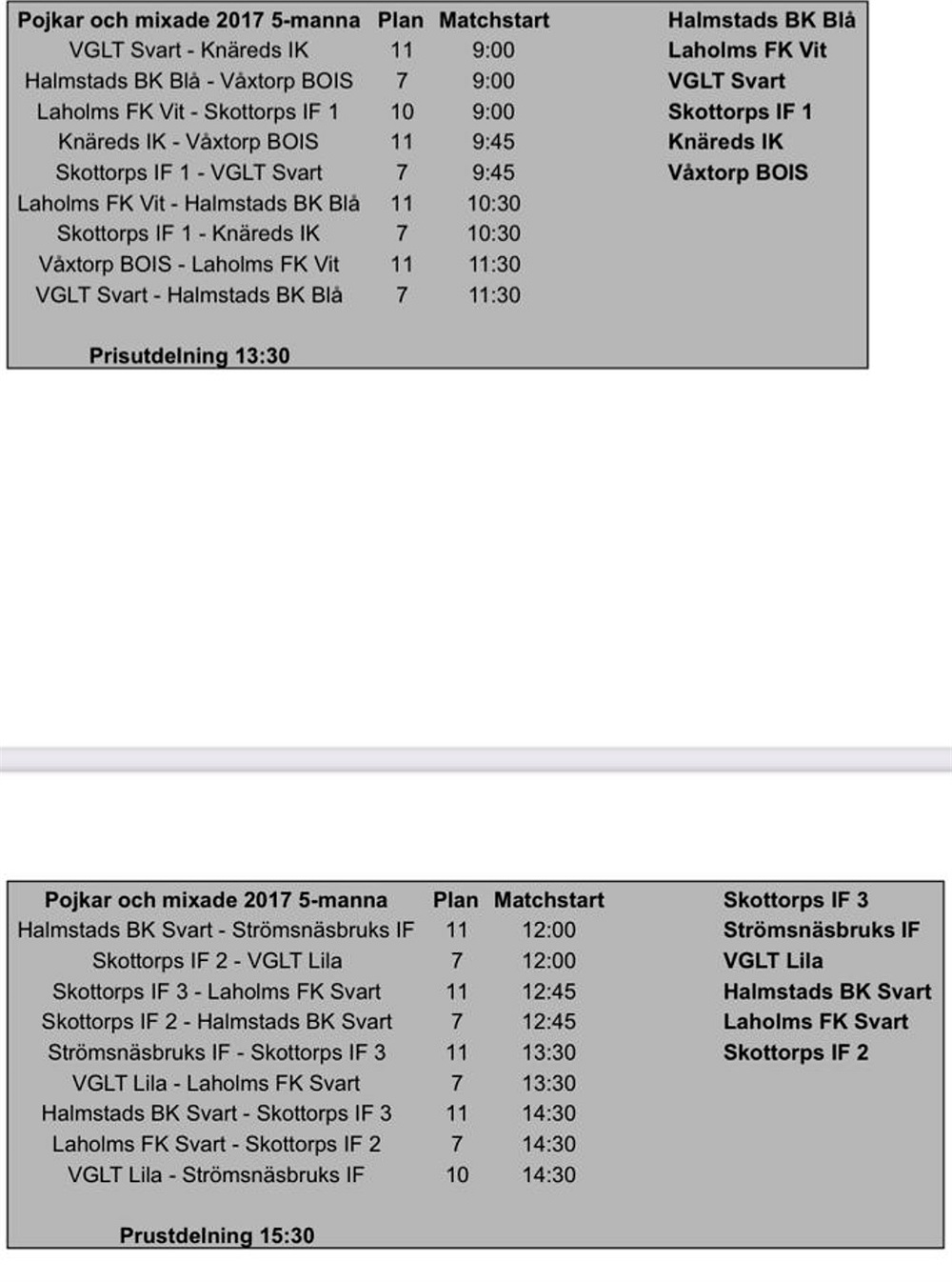 Nu börjar det närma sig avspark för Nationaldagscupen ⚽️ Se bifogad bild för spelschema, vilken plan som gäller samt tid för prisutdelning. Tänk på att hjälpa barnen hitta rätt plan i god tid innan varje matchstart - det kommer vara mycket folk och många matcher igång samtidigt.