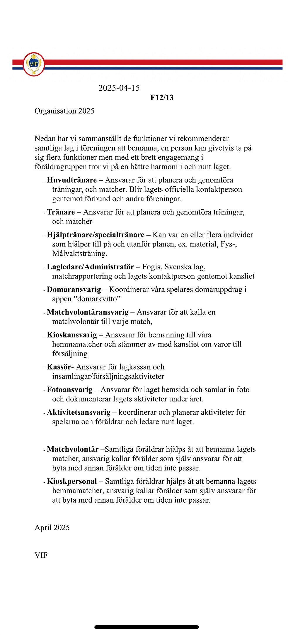 Välkommen till VIF-laget för flickor födda 12/13