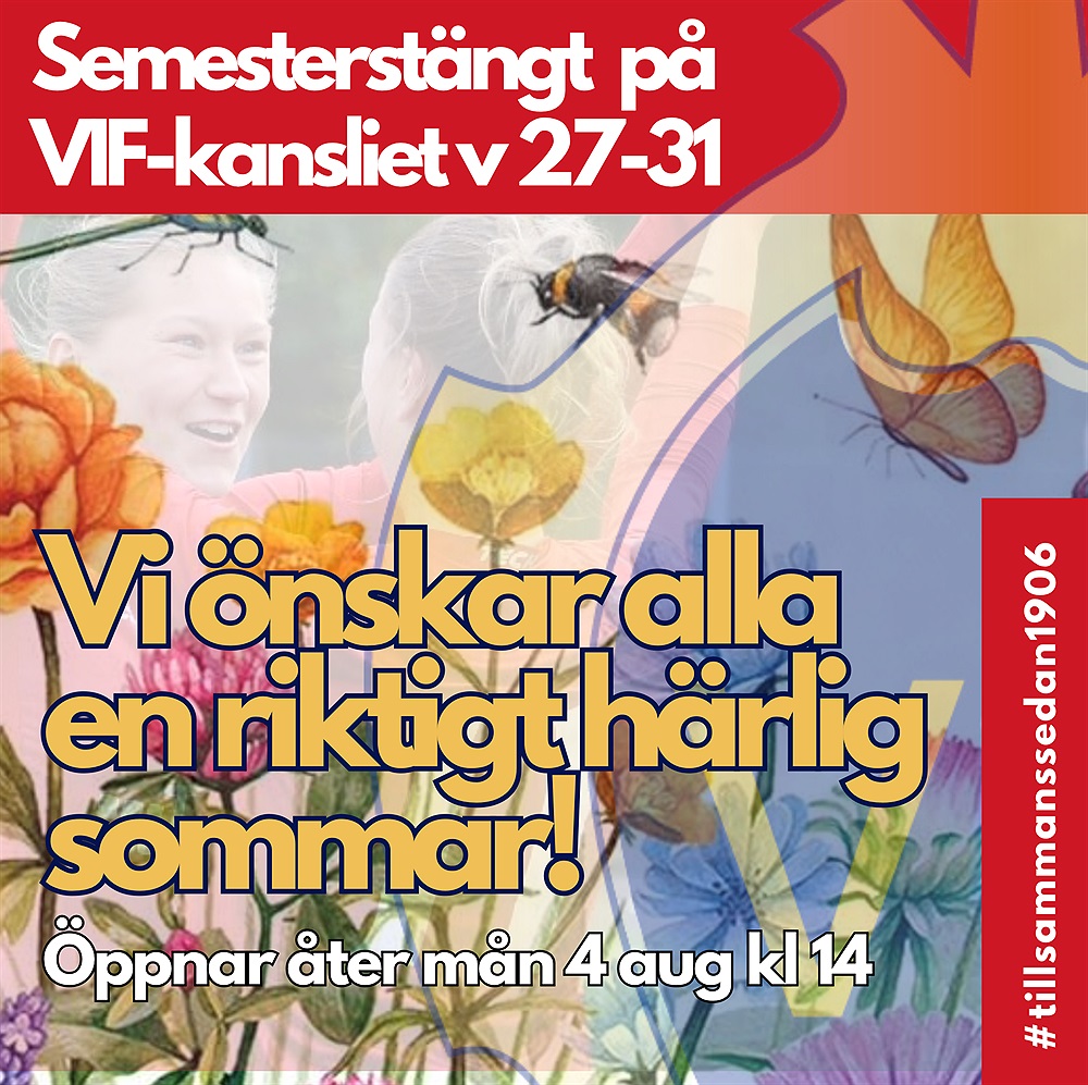 VIF:s kansli är obemannat vecka 27-31. Kansliansvariga Pernilla har semester med start måndag 30 juni. Kansliet öppnar åter måndag 4 augusti kl 14:00.