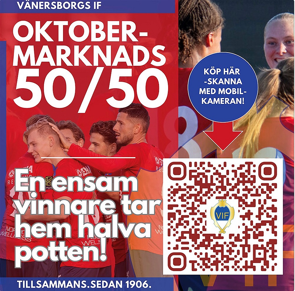 Vinstsumman i VIF:s Marknads-50/50, med dragning måndag 27 oktober kl 17:00, är nu nästan 5000 kr. Köp digitalt via länken eller scanna QR-koden med din mobilkamera.