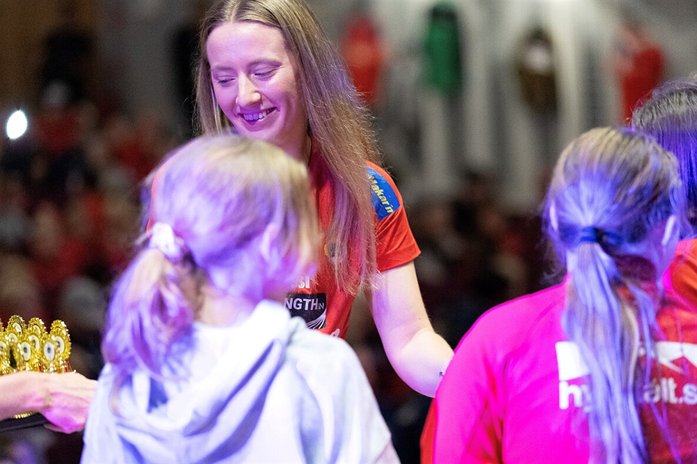 Damlagets lagkapten Sara Persson var en av prisutdelarna. Foto: Tobias Hval
