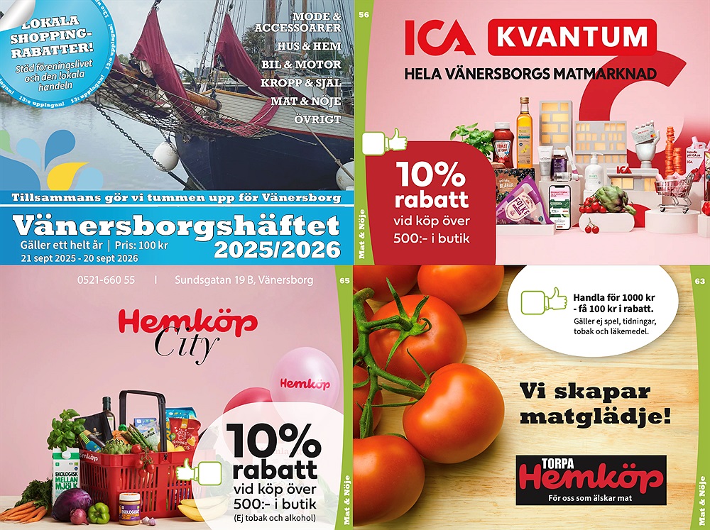 Vänersborgshäftet rymmer rabatter i tre lokala matbutiker. Handla hemma!
