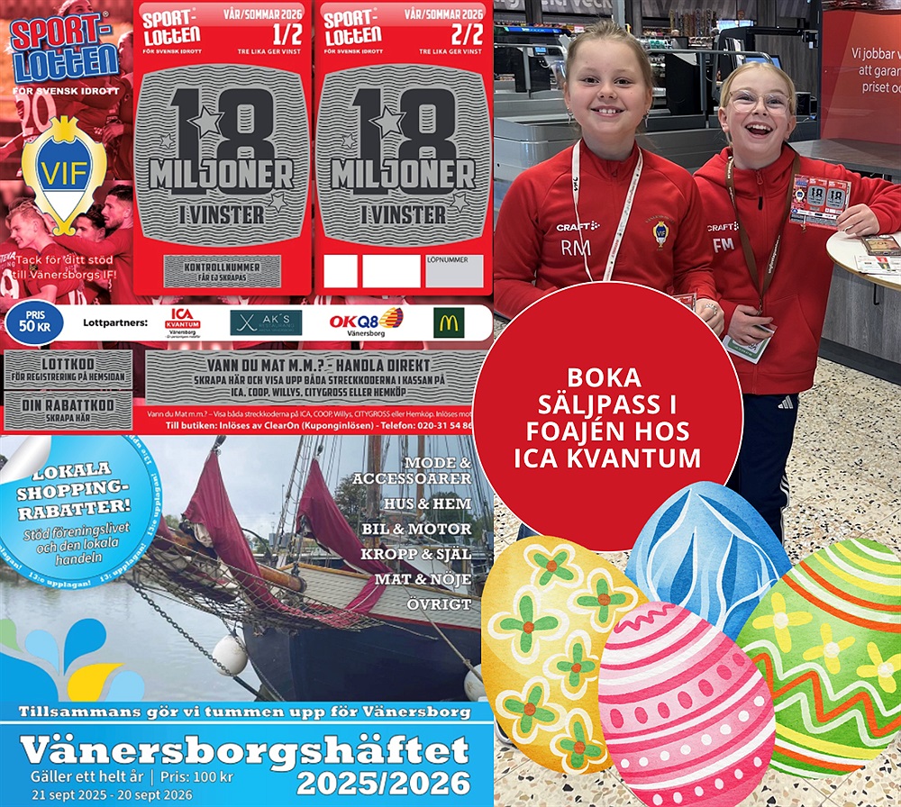 Både Sportlotten och Vänersborgshäftet innehåller rabatter hos VIF:s Huvudpartner ICA Kvantum. Boka säljpass om du har lotter eller häften kvar!