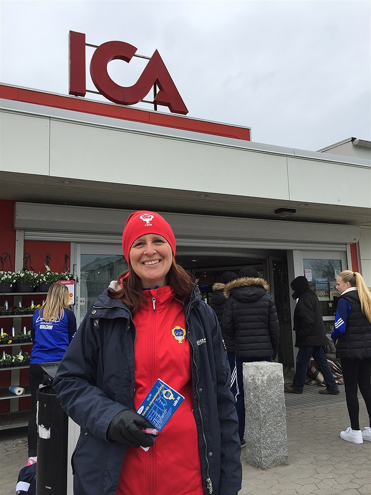 Katleen Almyren, ledare i F01, och lagets spelare sålde massor av båt- och matlotter utanför ICA Kvantum i lördags.