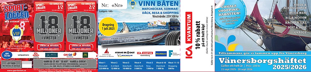 Tre etablerade VIF-produkter: VIF Sportlotten, VIF Båt- och Matlotteri och Vänersborgshäftet, som stimulerar den lokala handeln.