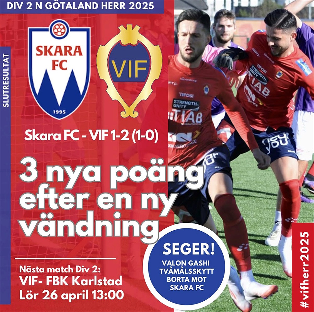 VIF:s herrar tog andra raka segern i Division 2 i bortamötet med Skara FC på Långfredagen. VIF vann med 1-2 (1-0).