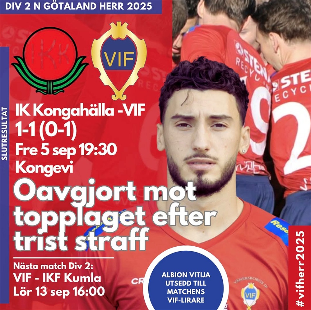 VIF tog sig an den tuffa bortamatchen mot IK Kongahälla med stort fokus, bra omställningsspel och hårt jobb på fredagskvällen. Det gav sånär tre poäng efter Valon Gashis ledningsmål i tolfte minuten. En lite onödig frispark på egen planhalva i slutsekunderna ledde i sin tur till en oturlig hands och straff för hemmalaget, som kvitterade till 1-1 på matchens sista spark.