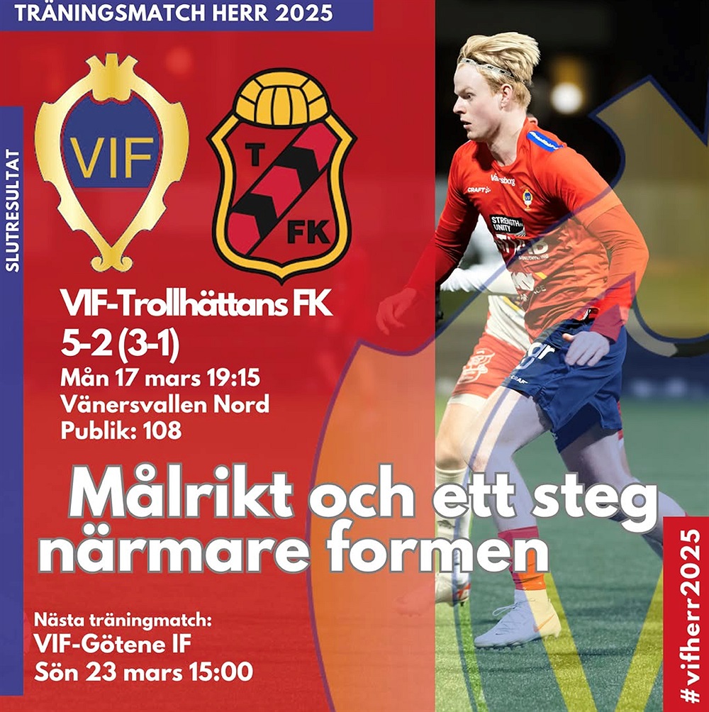 VIF tog dock successivt över, anfört av bland annat en trygg, bollsäker och hårt jobbande Markus Karlsson, som både assisterade och nätade den här kvällen. Ett par spelare var tillbaka efter sjukdom och en av dem, Klavi Vukaj, avslutade också målskyttet och spikade slutresultatet till 5-2 (3-1) i en stundtals riktigt underhållande match med flera snygga mål.