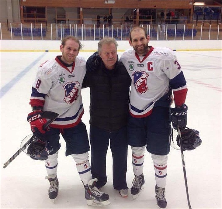 Lidingös tränare Per Wirén med Andreas Tumba och Christopher Tumba