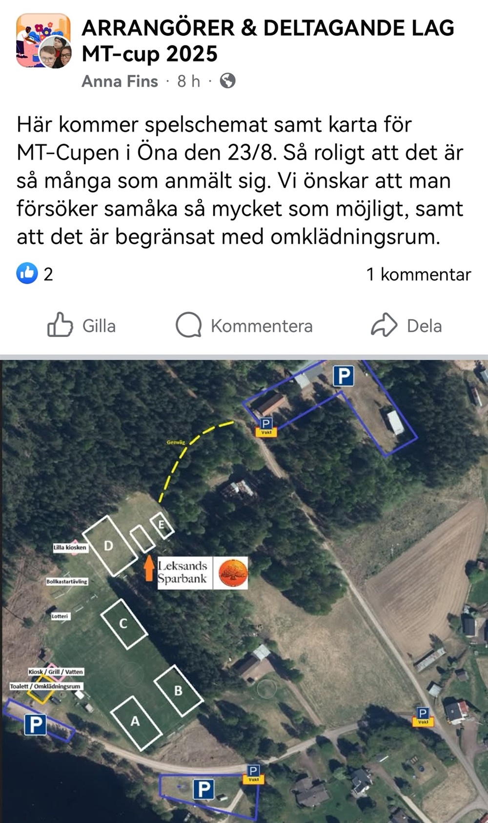 Vi spelar på planen "Leksands sparbank" se kartan.