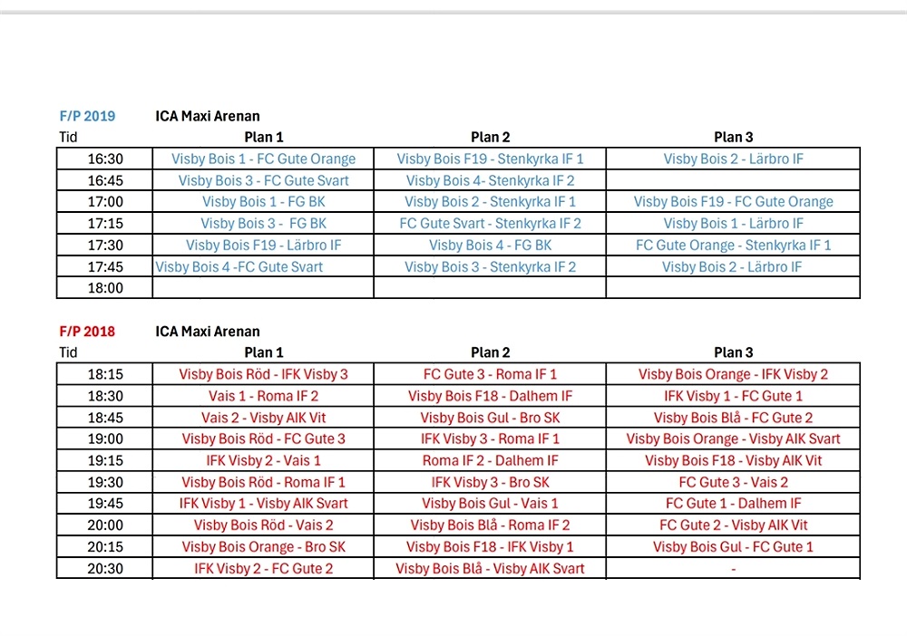1. Vi har kontaktat och fått byta plats på någon mellan lagen pga. sjukdomar i laget. Kom i rätt tid, min 45 min innan, till er samling. Se nya spelschema och lagindelning på LAGET-appen, eller via denna länk som uppdateras hela tiden: