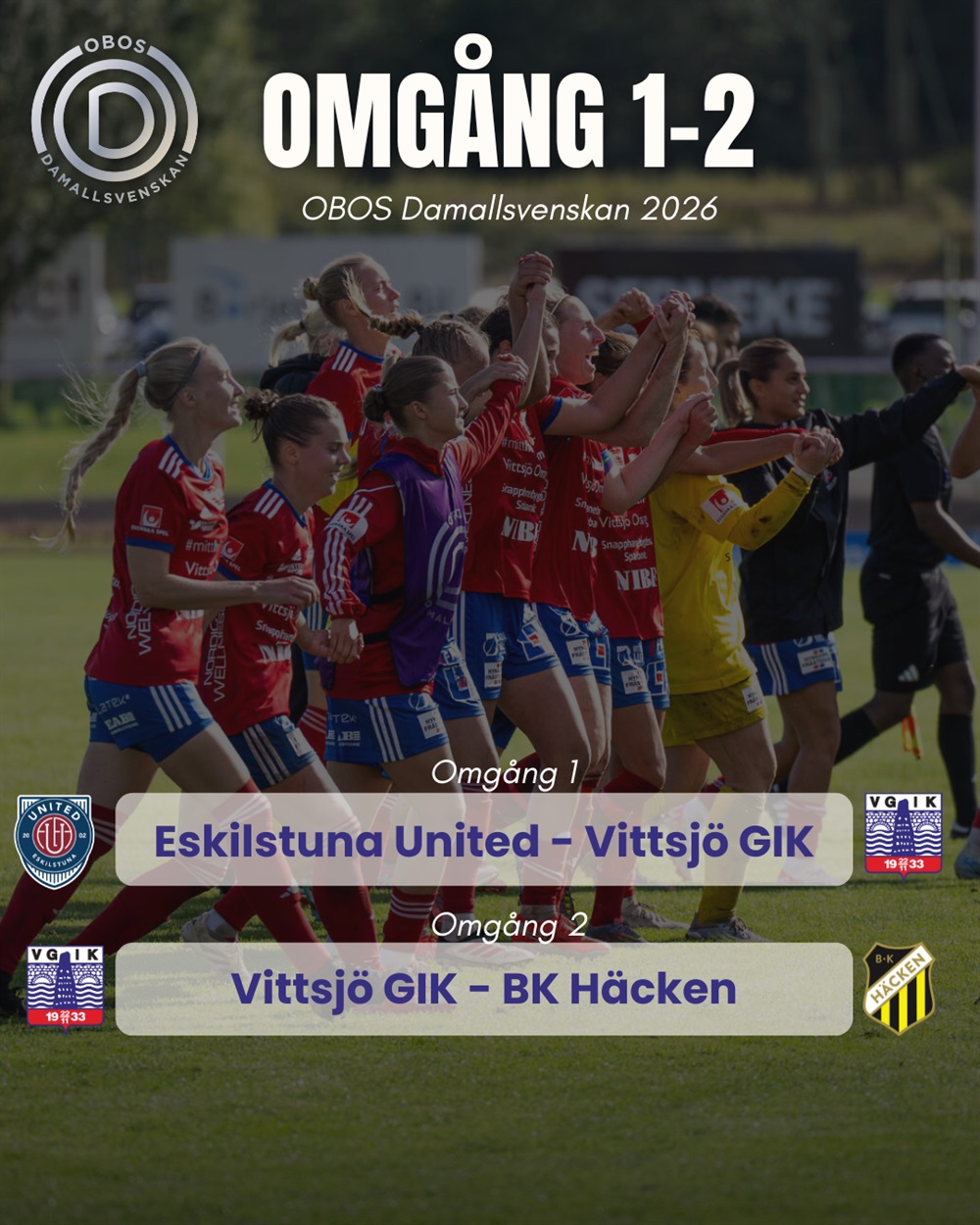 Då är det klart hur vi inleder säsongen 2026 i OBOS Damallsvenskan. I första omgången som spelas sista helgen i mars möte vi Eskilstuna United på bortaplan. Hemmapremiären spelas första helgen i april då vi tar emot regerande mästarna BK Häcken. Nu längtar vi till vår femtonde raka säsong i högsta serien.