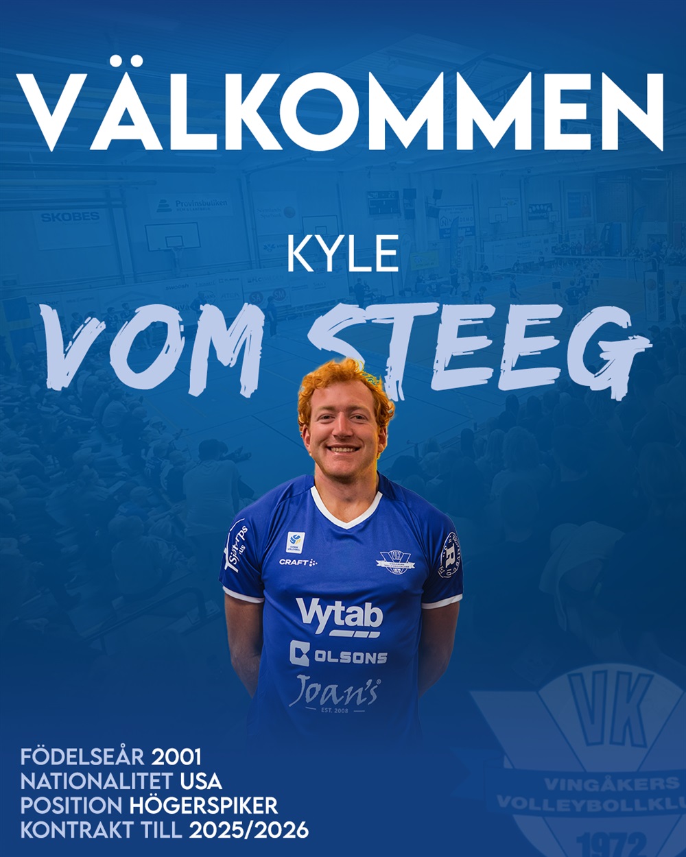 Trots att VVK är fyra matcher in i säsongen fortsätter lagledningen jobba hårt för att förstärka laget. Det senaste tillskottet är 24-årige amerikanen Kyle vom Steeg. Kyle är en 201 cm lång högerspiker som närmast kommer från Essex Rebels i engelska ligan.