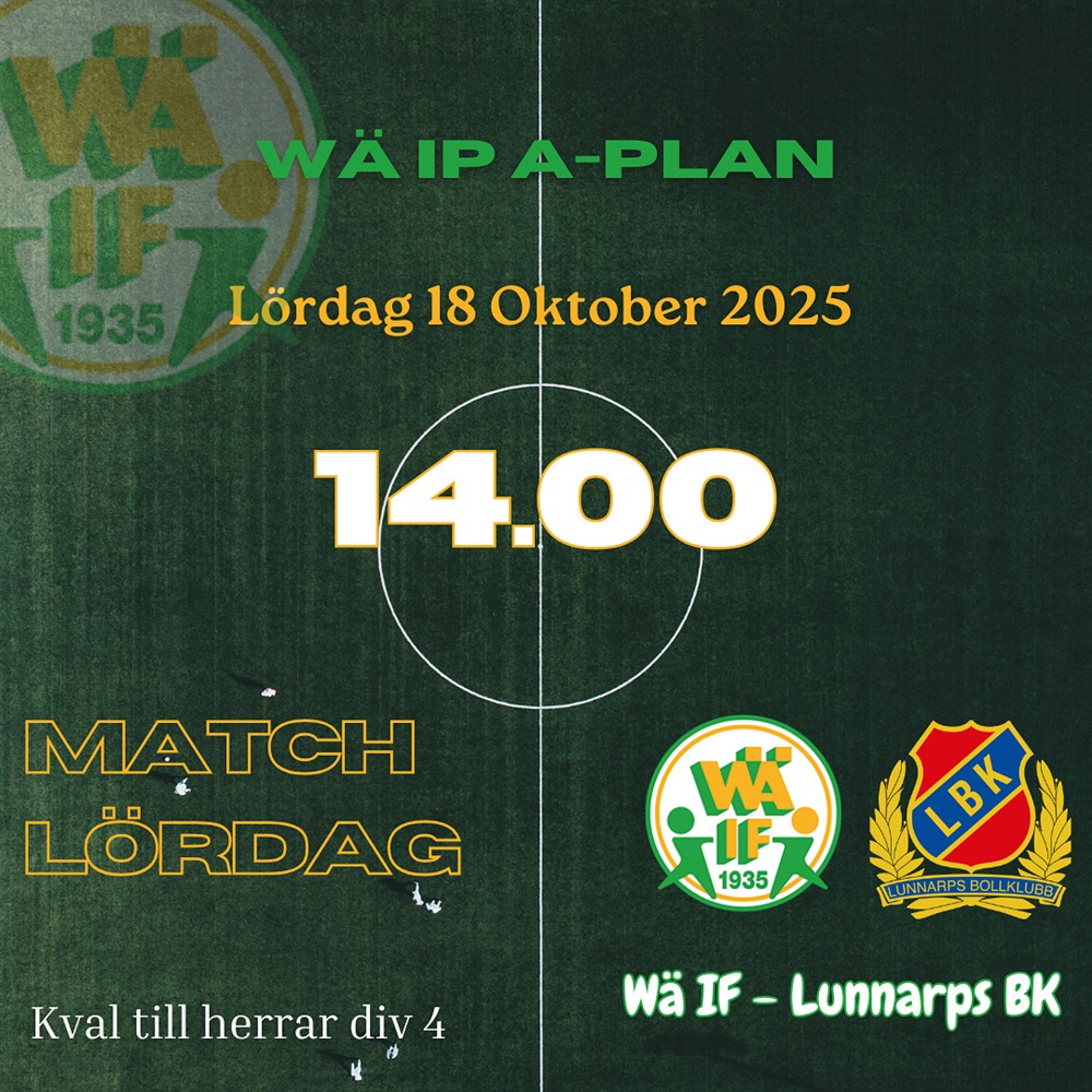 På lördag kl. 14.00 spelar vårt herrlag kvalmatch till division 4 mot Lunnarps BK på Wä IP.