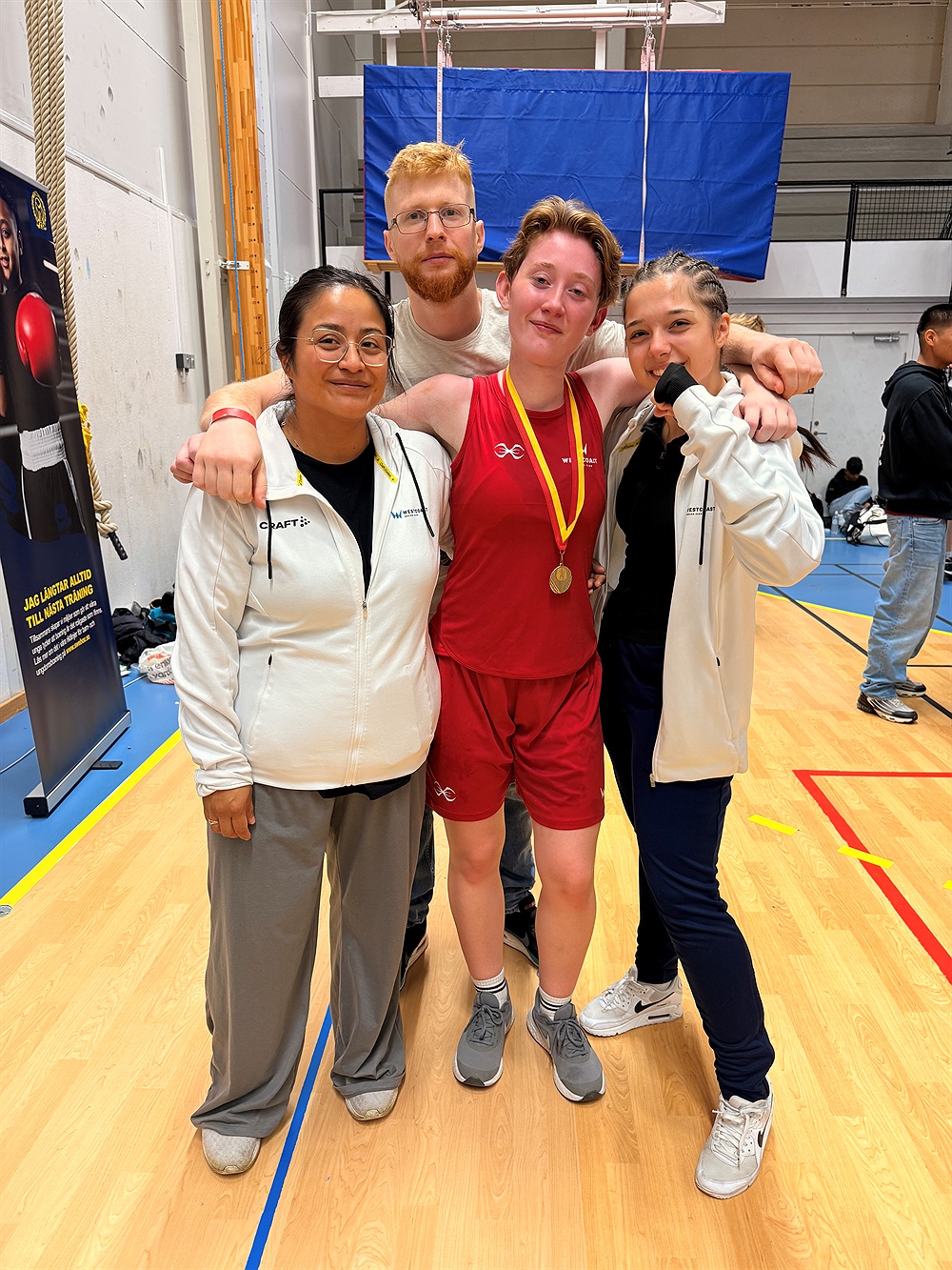 Elvira, som bara har tränat boxning i sex månader, ställdes mot en motståndare från en lättare viktklass. Trots sin korta tid i sporten har hon visat ett enormt tävlingshjärta, och det syntes verkligen i den här matchen. Hon satte gång på gång rena träffar, och ett tag trodde vi att domaren skulle bryta matchen till hennes fördel. Men motståndaren kämpade vidare, och trots att Elvira var helt utmattad och knappt orkade hålla upp garden, lyckades hon ta hem segern med 2–1. Därmed blev hon WestCoast Boxings allra första Sydsvenska Mästare. Stort grattis till guldet, Elvira!