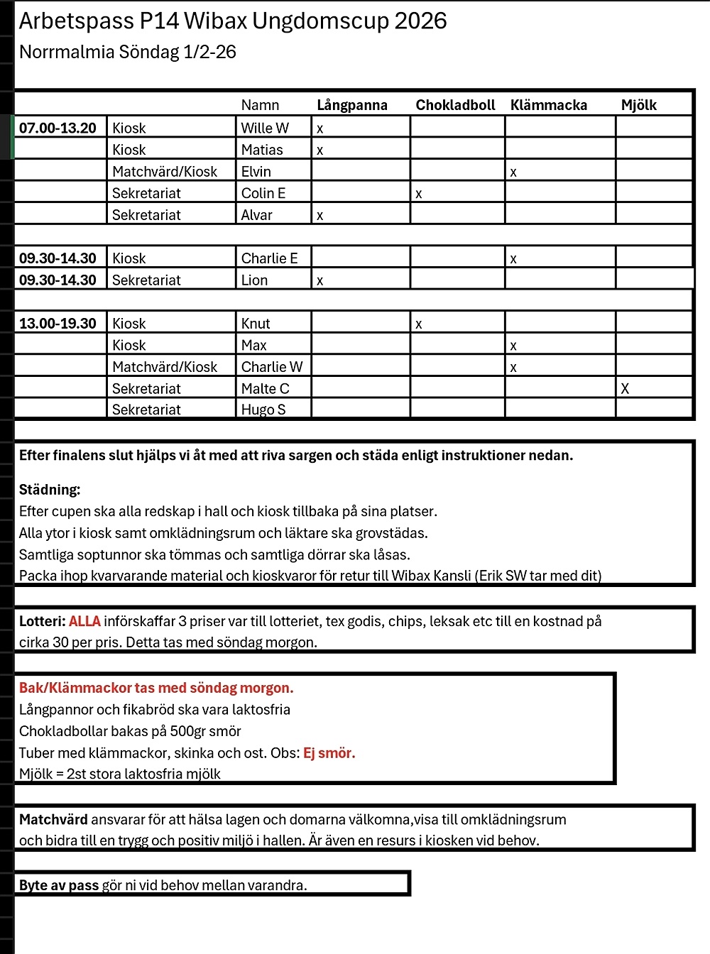 I detta inlägg hittar ni info om arbetspass och övriga uppgifter under cupen.