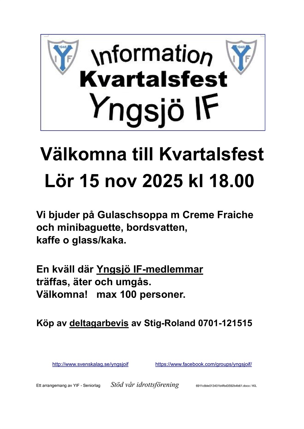 En kväll där Yngsjö IF medlemmar träffas och äter och umgås.