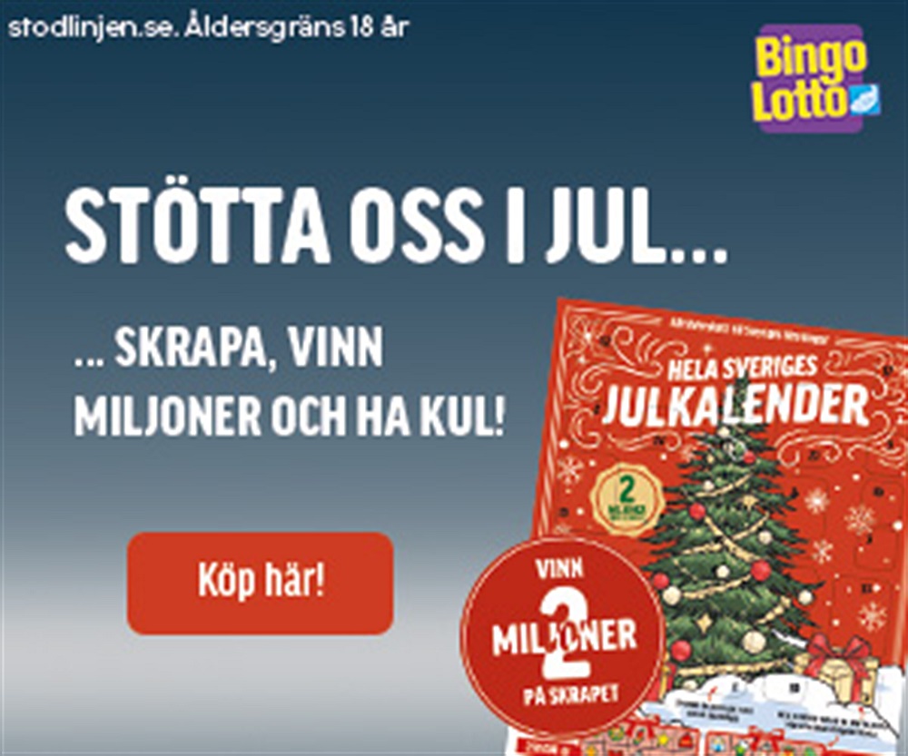 BingoLottos Julkalender kostar 100 kronor. 50:- direkt till föreningen.